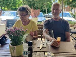 Ons ieste zoumeractivitaait van deis joer, sjgildere en tiekene in de nateur in Woregem,Wortegem-Petegem. Neige couraguis artiste stonde geried mè pak en zak: Vivke, Sonja, Mady, Els, Estefania, Guido, Peter, Erik en Marcel. Moregem es e sjguun deurpke mè een kerk, een hoesj of teen, ne restaurant en de galeree Verduyn. Noe ne charmante’n acceuil van de madam van de galeree zèmmer oen begost. Wèmme n’ons g’installeid in den hof van de galeree, eeder in zan hoekske op zan bankske, in de zonne of in de loemerte, en mo beuze geive, den iene mè aquarel, den andere mè ne crayon of mè pastel. De resultat mag gezeen werre. Enfin den taaid goe rap dui as ga amuzeid en op sjlag en oemzeen was’t taaid vè goen t’eite. De restaurant “De Vierschaar” lag just achter t’ hoekske. Het eite was good, de sollekes woere naaig in trek. Erik en Marcel èmme gekouze vè de specialitaait van t’hoesj, “De goeiendag”. In Calvados geflambeiden bufsteik vastgemokt oen ne wèrmen bol mè pinne, eet specioel. Boeite e klaan accidenteke mè de wèrme chocolat van den Dame Blanche van Sonja es den dinei goo verluupe. In de galeree Verduyn zèmme goen zeen no d’expozeese. In den hof stonde toffe posturekes en binne tiekeninge allien gemokt mè nen bic, of werke mè ouversjgot van stof oenien genoeid van Charbel tot een gruute lugeubere sjgilderaa mè allemoel pei’s op vè sjrik van te kraaige van Jose Luis Carraza. Sjguun leekes deure ni lank en t’was al taaid vè terug te raaie no Dilbeik. Nog eet goen drinke in Lou’s plek en den no r’hoesj. Volgende rendez vous: den ieste ogustus, de Verbeke Foundation in Kemzeke.
