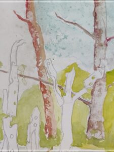 Nu kiezen… Voor een plaatsje binnen of buiten? Voor tekenen of schilderen? De keuze was niet makkelijk omwille van de enorme diversiteit. Iedereen begon eraan met veel courage en na anderhalf uur stond er al veel op papier; en de resultaten zijn aantrekkelijk.