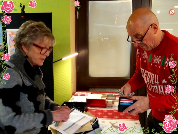 Onze laatste atelierdag (vr 19 december 2025) hebben we opgeofferd om met z’n allen een standje op de Kerstmarkt van Breugheldal te bemannen. De panelen hingen vol met recente werkjes op het atelier gemaakt en op de tafels krioelde het van de wenskaarten geïnspireerd op die werkjes. Omwille van omstandigheden kon uw verslaggever niet aanwezig zijn op deze heuglijke gelegenheid. Daarom laat ik de aanwezigen aan het woord met enkele quotes die over en weer vlogen op WhatsApp.