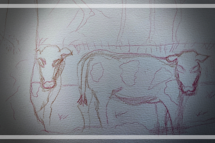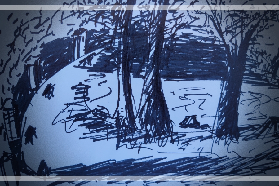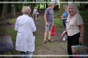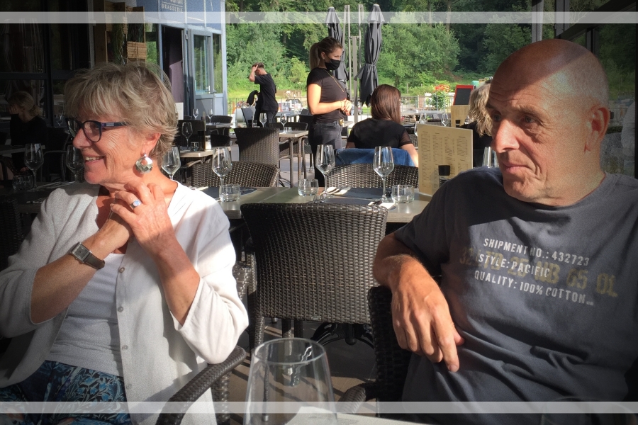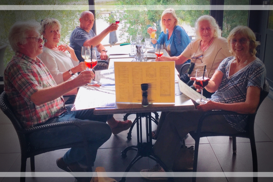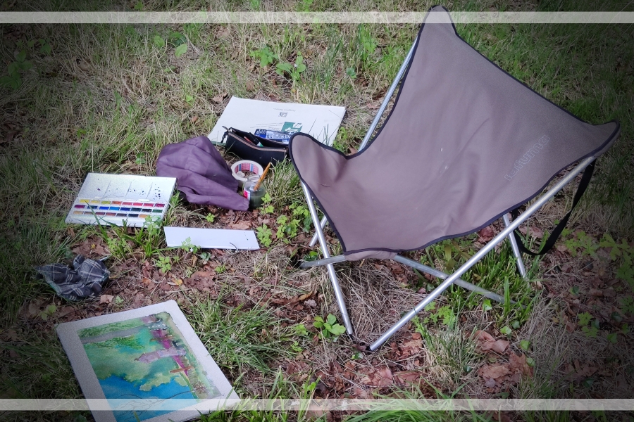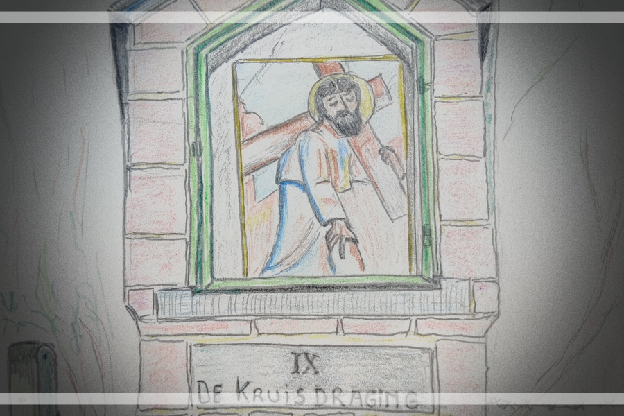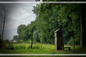 Met z’n zessen in twee wagens trokken we naar Neigem, naar de kapel van de heilige Rita. Vol goede moed gingen we aan de slag, ervan overtuigd dat deze heilig (patrones van de hopeloze gevallen) onze creativiteit gunstig zou beïnvloeden. Van de regen moeten we geen schrik hebben maar een echt zomerse dag was het nu ook weer niet. De zon bleef al te lang verscholen achter een dik wolkendek, wat alles een beetje somberder maakte. Dat is dan ook te zien aan de resultaten van de dag. Gelukkig was het restaurantje van goede kwaliteit en zijn we het etablissement niet ontvlucht.